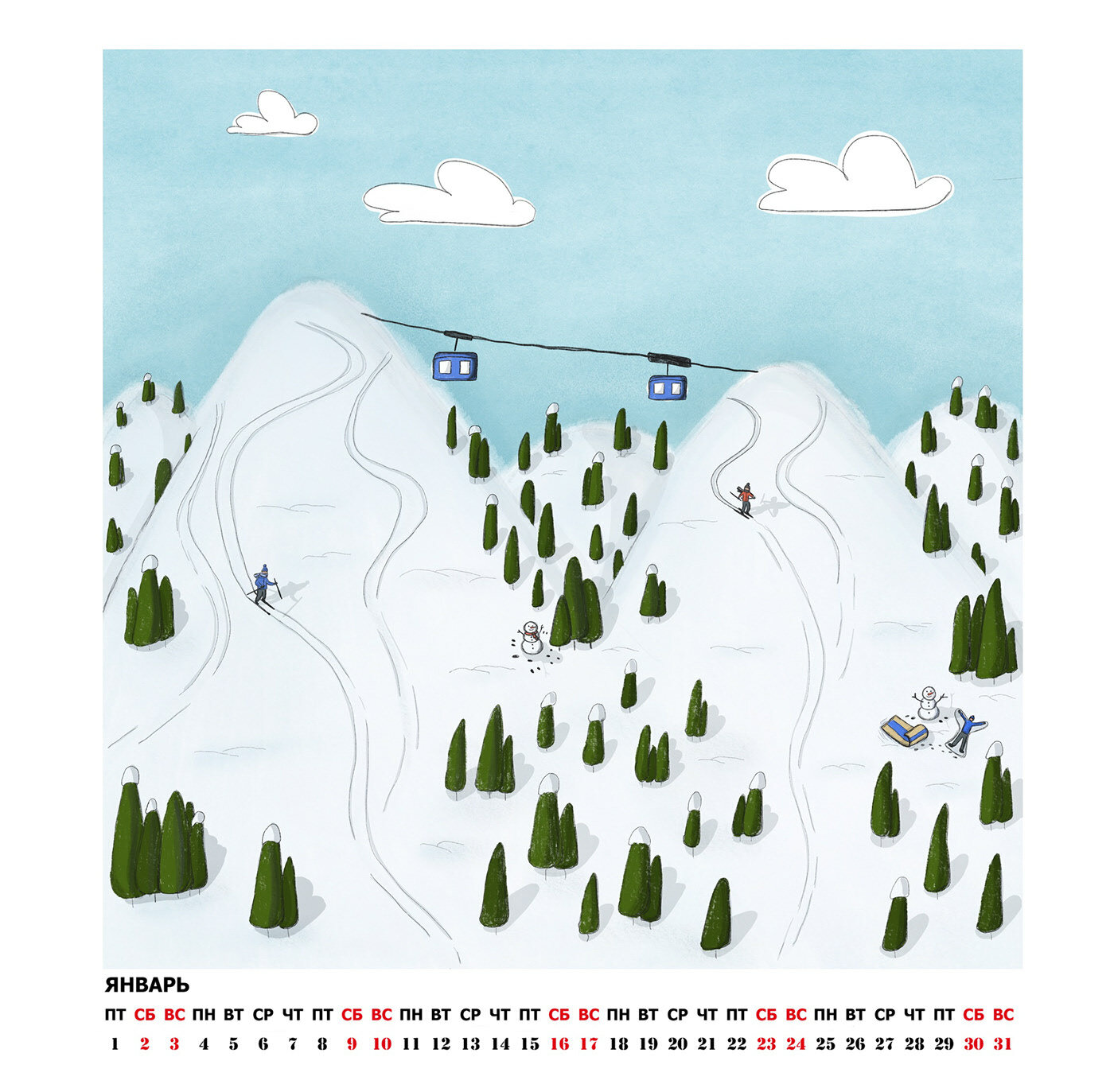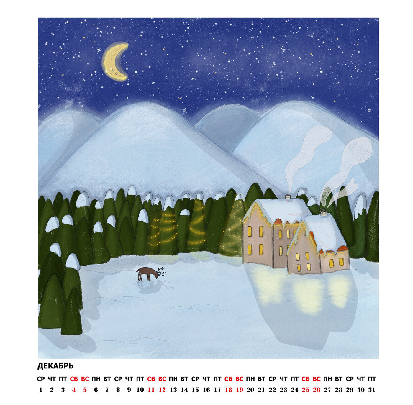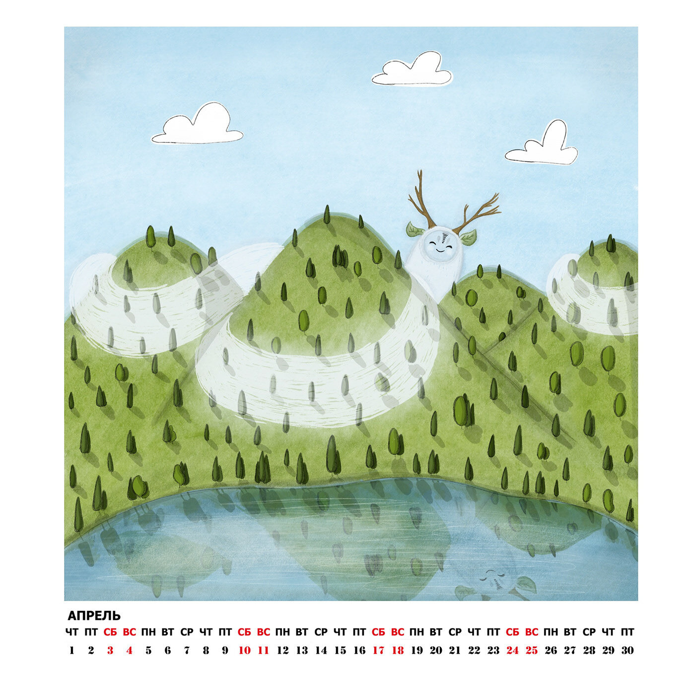 Project consisting of twelve illustrations of mountain landscapes at different times of the year. It was necessary to show all the diversity of mountain nature and the beauty of mountain peaks. I live in small foothill town. My friends and I often travel to the mountains. I gladly took up the implementation of this project, as I know firsthand how beautiful mountain landscapes are. "Happiness is just around the corner... it's in the mountains.."