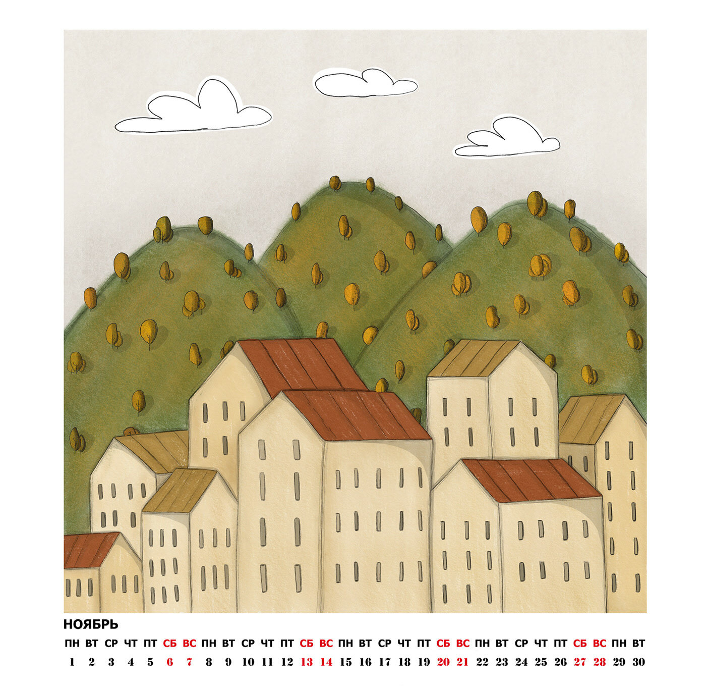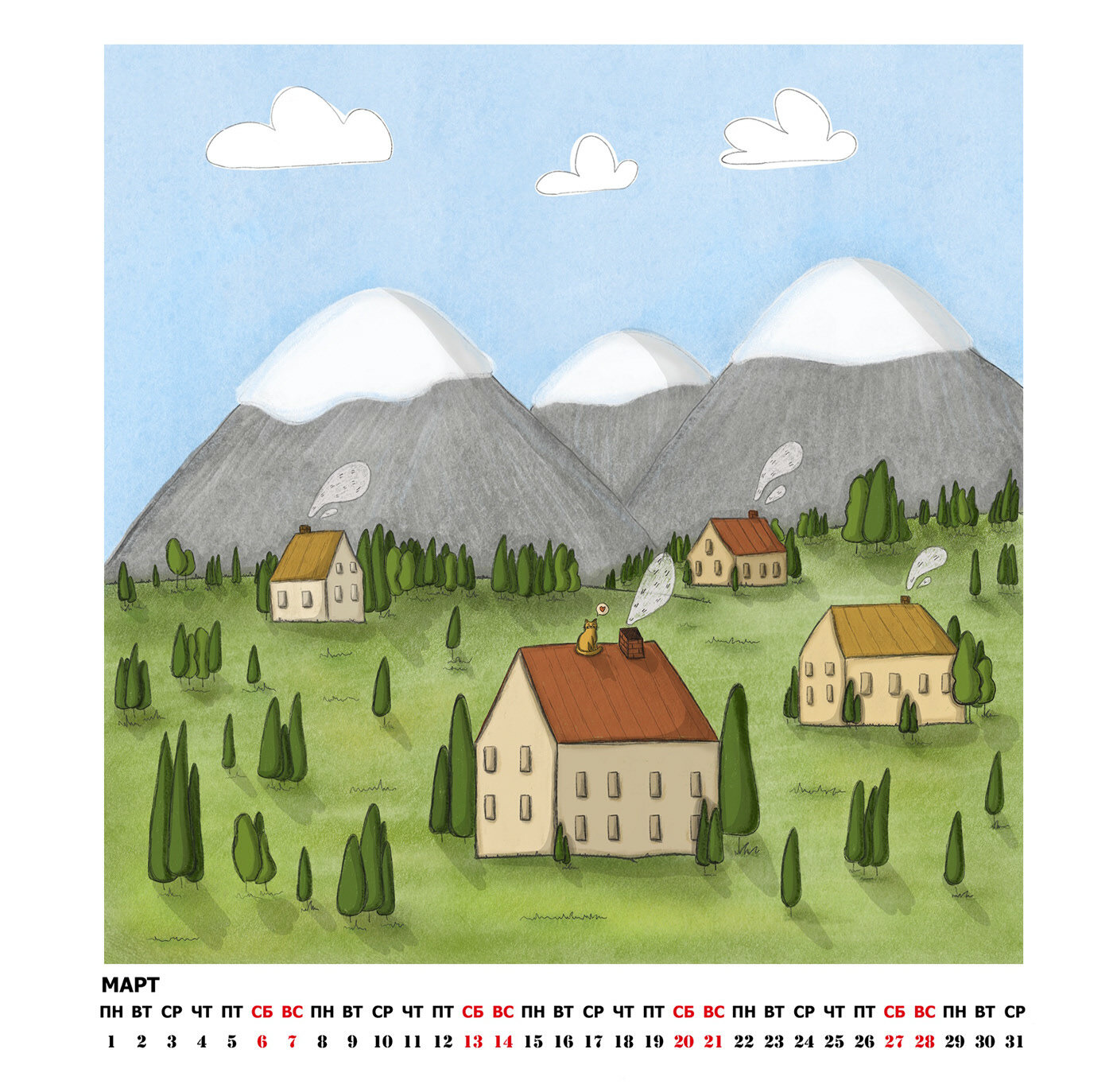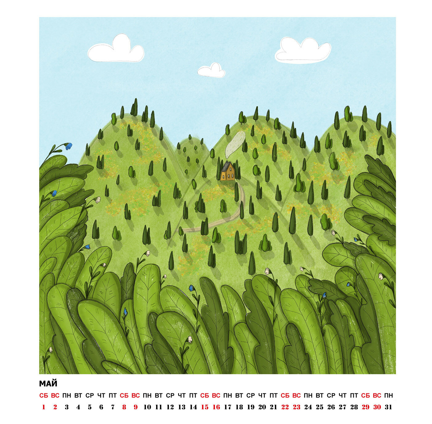 Project consisting of twelve illustrations of mountain landscapes at different times of the year. It was necessary to show all the diversity of mountain nature and the beauty of mountain peaks. I live in small foothill town. My friends and I often travel to the mountains. I gladly took up the implementation of this project, as I know firsthand how beautiful mountain landscapes are. "Happiness is just around the corner... it's in the mountains.."